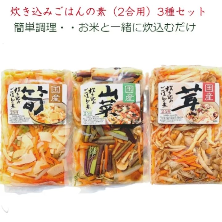 天然素材の炊き込みご飯の素3種セットです(各1袋 2合用)