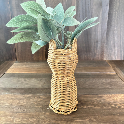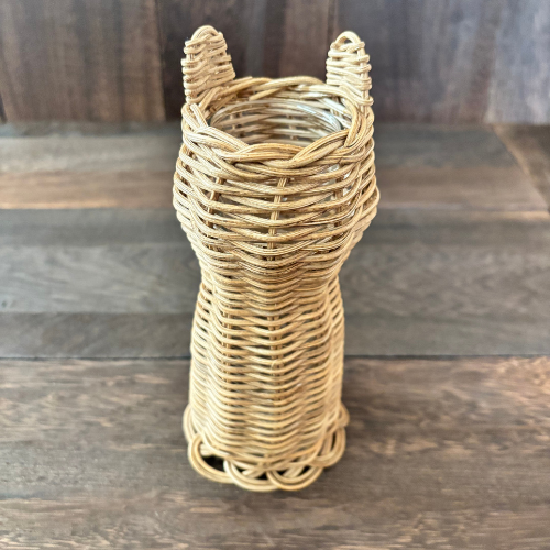 天然素材の籐(トウ・ラタン)で編んだ、ねこ耳のようなフォルムが愛らしいフラワーベースです。