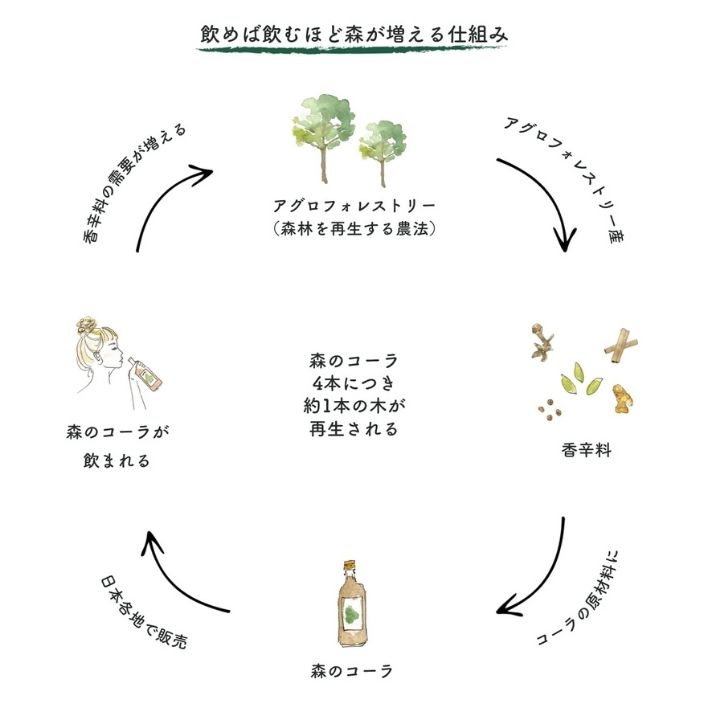 森のコーラを飲めば飲むほど、アグロフォレストリーへの支持が増える=インドネシアの森が再生するという仕組みです。