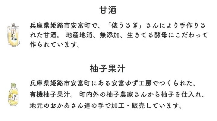5種類の香辛料をバランスよく配合し、香りのアクセントには兵庫県姫路市安富町産の柚子果汁を使用。甘みには、同じく安富町で手作りされた甘酒ときび砂糖を使い、やさしく奥行きのある味わいに仕上げました。スパイスの刺激が強すぎず、後味はすっきりと飲みやすいのが特長です。