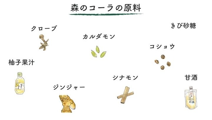 「森のコーラ」は香辛料と甘酒を使うことで、甘さはやさしく、後味はすっきり。