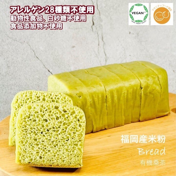 米粉パンは、小麦粉に比べアレルギー反応が少なく、胃腸にも優しいと人気のパンです。当店では、プレーン、チョコマーブル、桑茶の3つのフレーバーをご用意しております。どれもしっとりとした食感が特徴です。