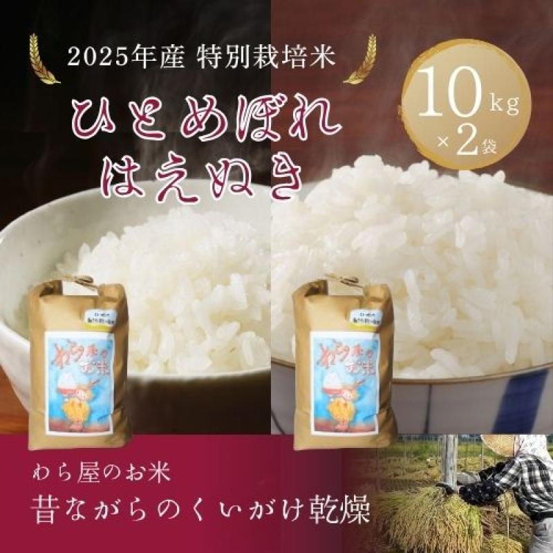 【2025年新米】 特別栽培米 『わら屋のお米』20kg ( はえぬき:10kg ひとめぼれ:10kg) くいがけ自然乾燥米 令和7年度産
