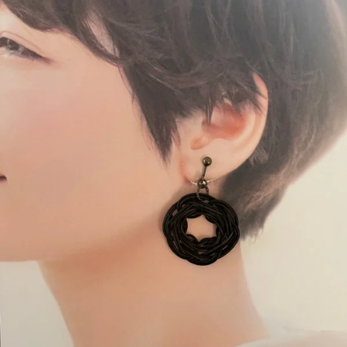 ラタン 皮籐サークルイヤリング( ナチュラル)