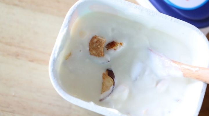 ヨーグルトに入れるときは、プレーンヨーグルト1パック(400g)にスプーンで山盛り3杯くらいを入れてよくかき混ぜ、冷蔵庫で6時間〜8時間くらい漬け込むのがおすすめです。
