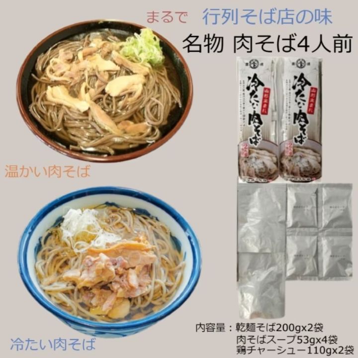 ・そばは乾麺、肉そばスープと鶏チャーシュー(味付)はレトルトパウチ食品です