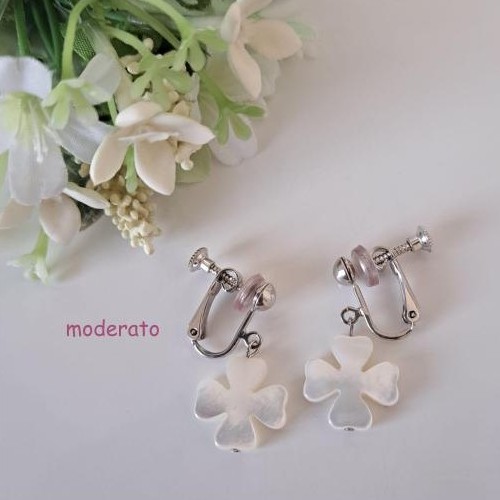 【Clover】クローバー型マザーオブパールイヤリング MER705
