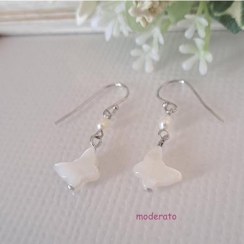 【Butterfly】蝶々型シェル×淡水パールピアス MPE707