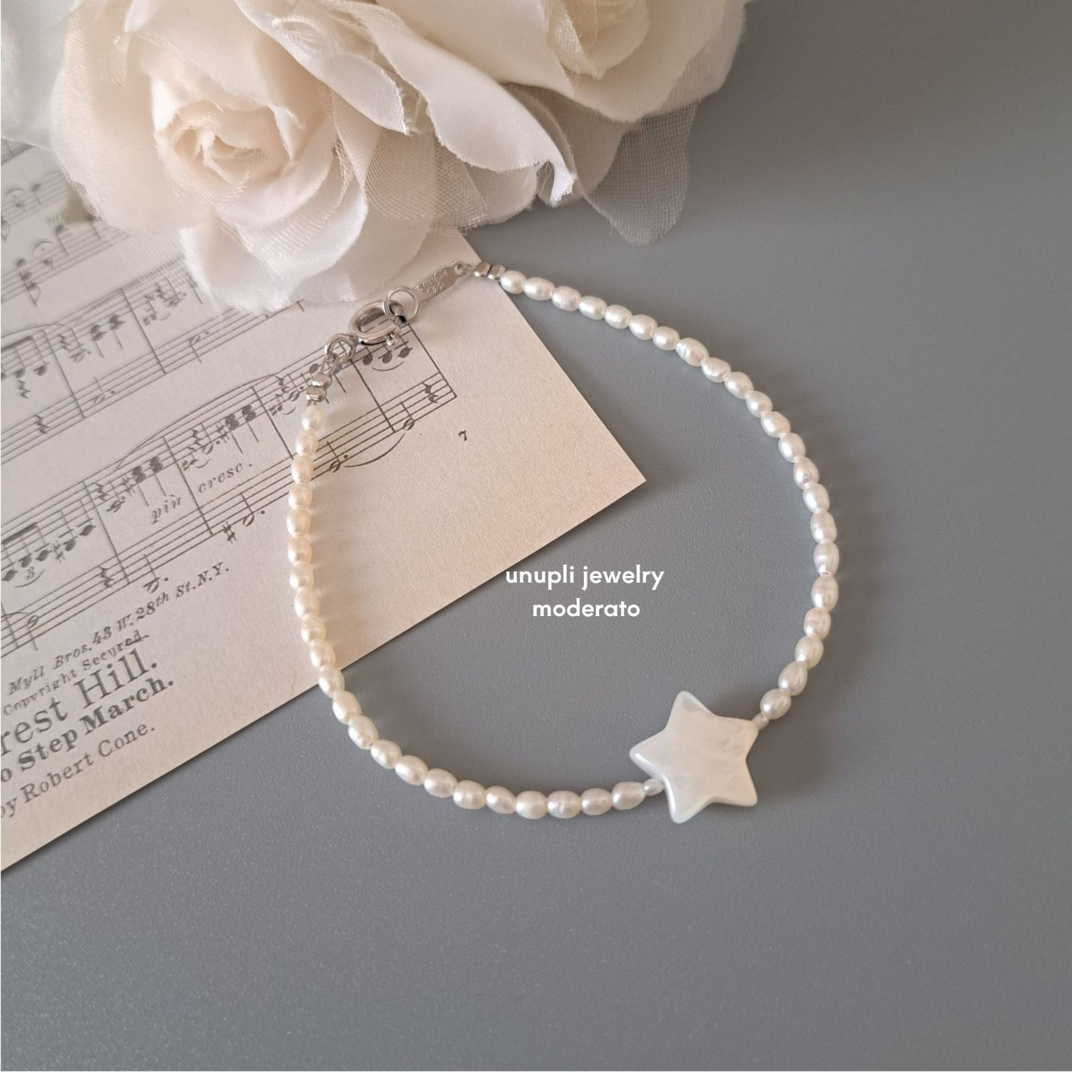 【STAR】星型マザーオブパール×淡水パールブレスレット MBL703