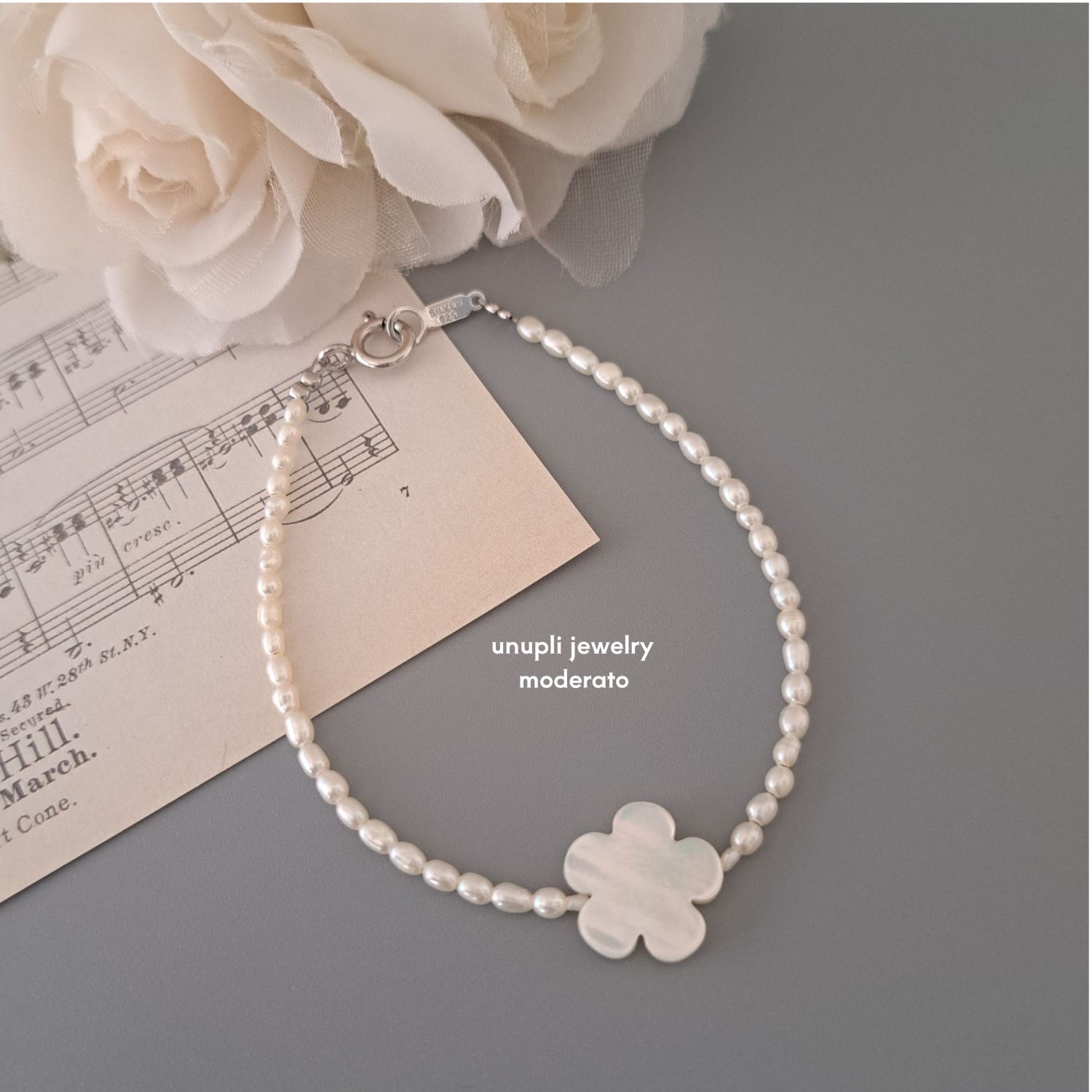【Flower】花型マザーオブパール×淡水パールブレスレット MBL704