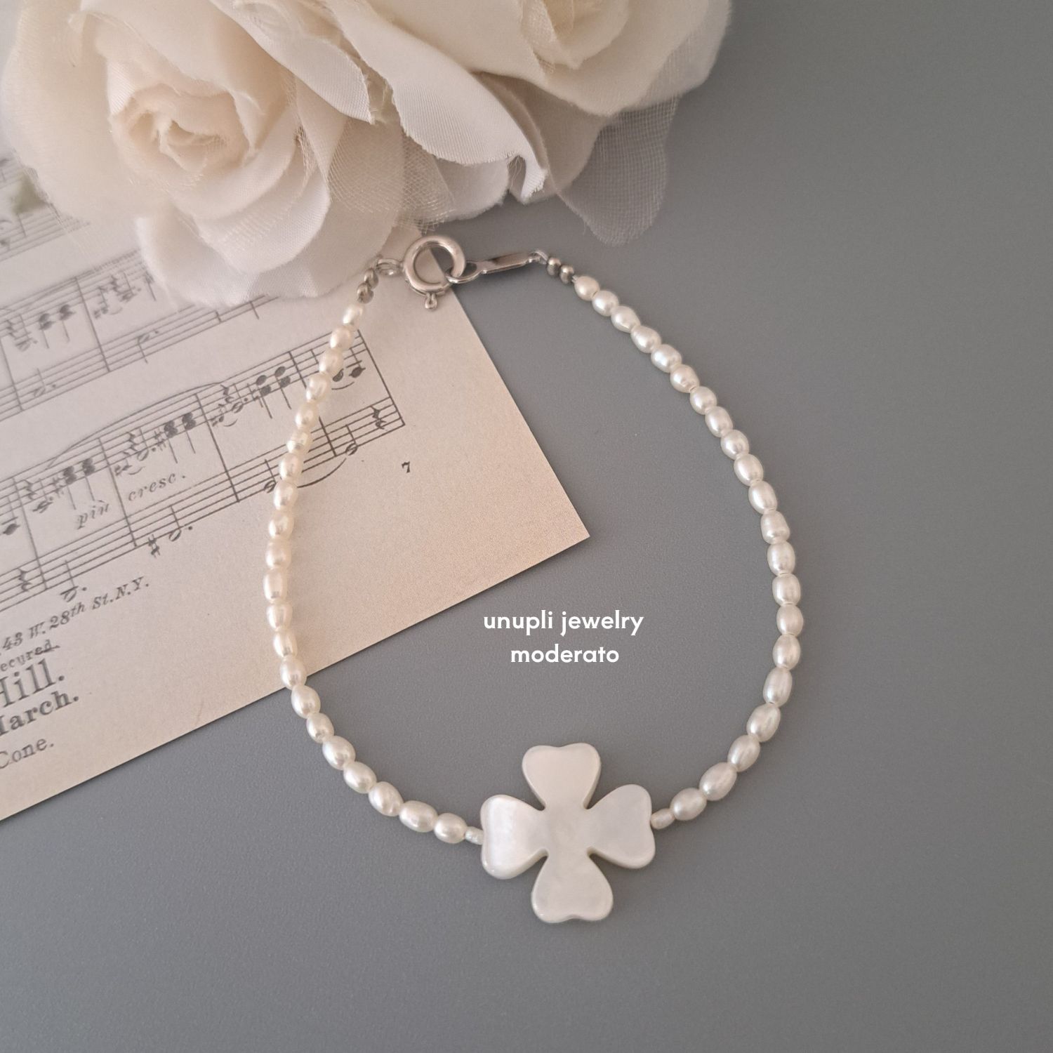 【Clover】クローバー 型マザーオブパール×淡水パールブレスレット MBL705