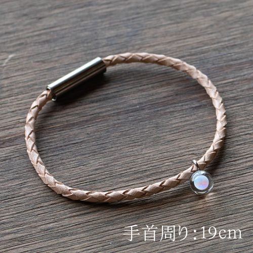 moonレザーブレスレット / マグネット入り純チタンパーツ編み込みレザー(シングル)(手首周り:19cm)