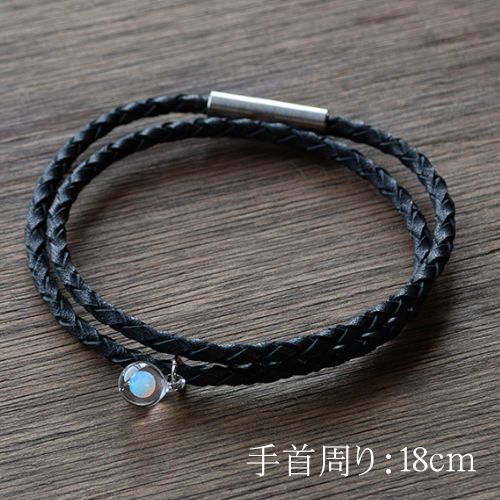 moonレザーブレスレット / マグネット入り純チタンパーツ編み込みレザー(シングル)(手首周り:20cm)